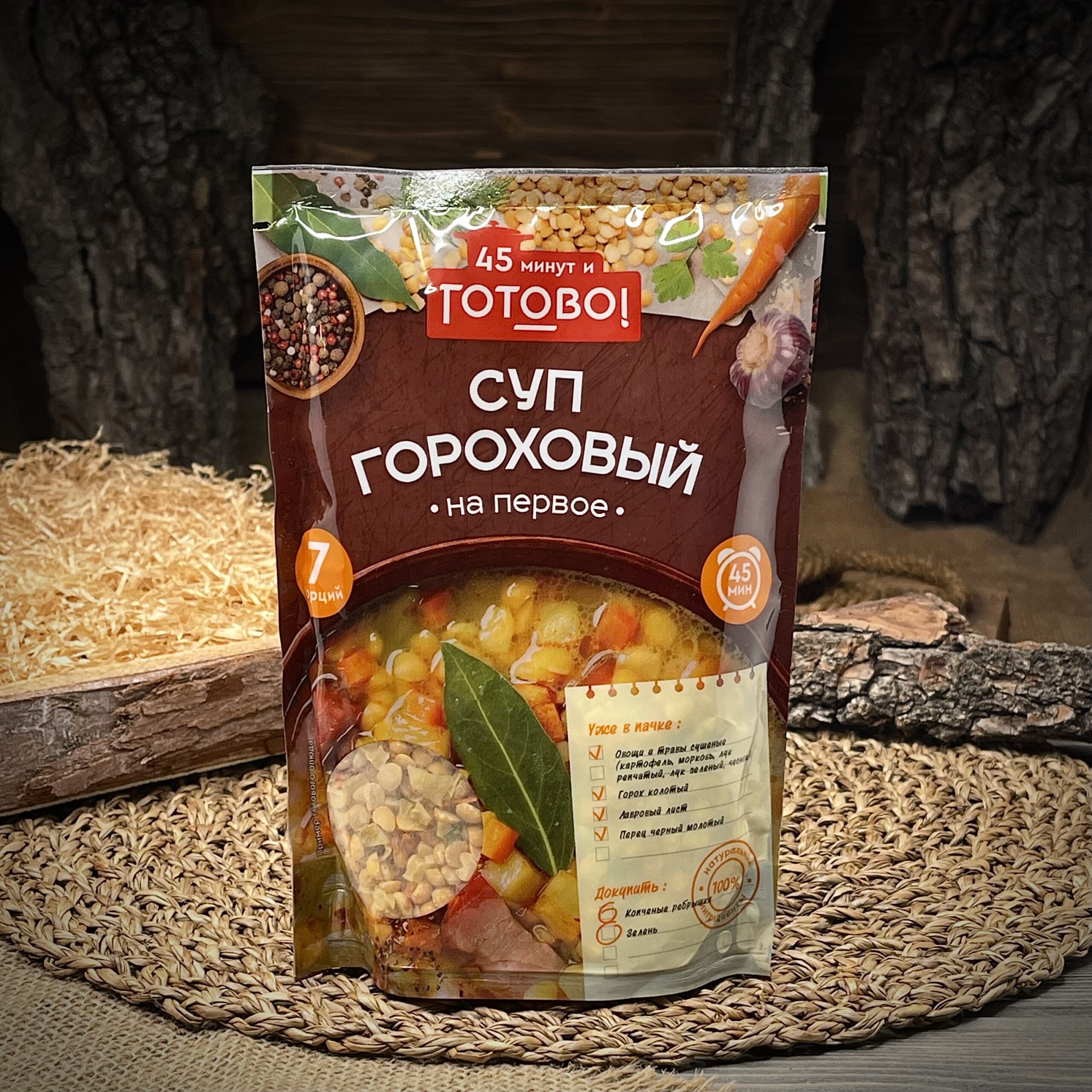 Суп гороховый Готово! — ароматный и сытный суп, созданный на основе сушеного гороха, овощей и специй. Отличается насыщенным вкусом и натуральным составом.